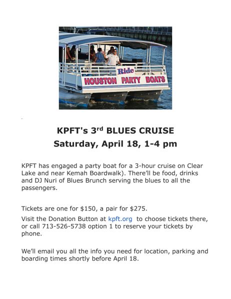 Come join KPFT on its third Blues Cruise, Saturday April 18, 2026, from...
